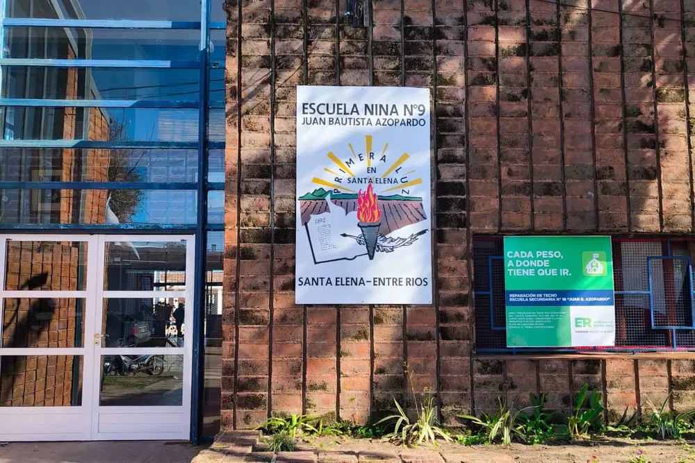 El Ministerio de Planeamiento, Infraestructura y Servicios avanza con trabajos de reparación de la cubierta y la instalación eléctrica en la escuela secundaria Nº 16 Juan Bautista Azopardo, de Santa Elena, donde también funciona la escuela primaria Nº 9 y se encuentra ubicada en la intersección de Belgrano y Dardo P. Blanc.