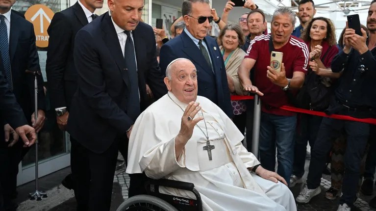 El jesuita argentino salió en silla de ruedas y con una sonrisa de oreja a oreja del Policlínico Gemelli, donde lo esperaba una multitud de feligreses y periodistas en las puertas.